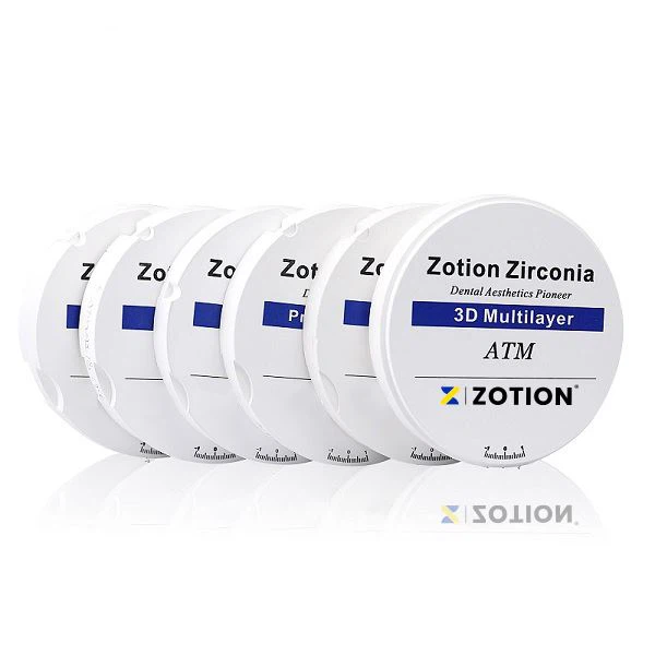 Zotion té molts tipus de zirconia, inclòs el bloc de zirconi blanc (HT: > 1200mpa Translucency: 41%, ST: > 900mpa Translucency: 43%), bloc de zirconia preshaded (STC: > 900mpa Translucency: 43%, HTC: > 1200mpa Translucència: 41%), 3d multilayer Zirconia Block (stm: 800mpa -1100 mPa Translucency: 43%-49%, atm: 600mpa {{14} mPa Translucency: 46%-55 Translucency: 43%-49%, TATM: 600MPA -900 MPA Translucency: 46%-55%) Zotion Dental Zirconia té una gran força, bona translucència i color natural.